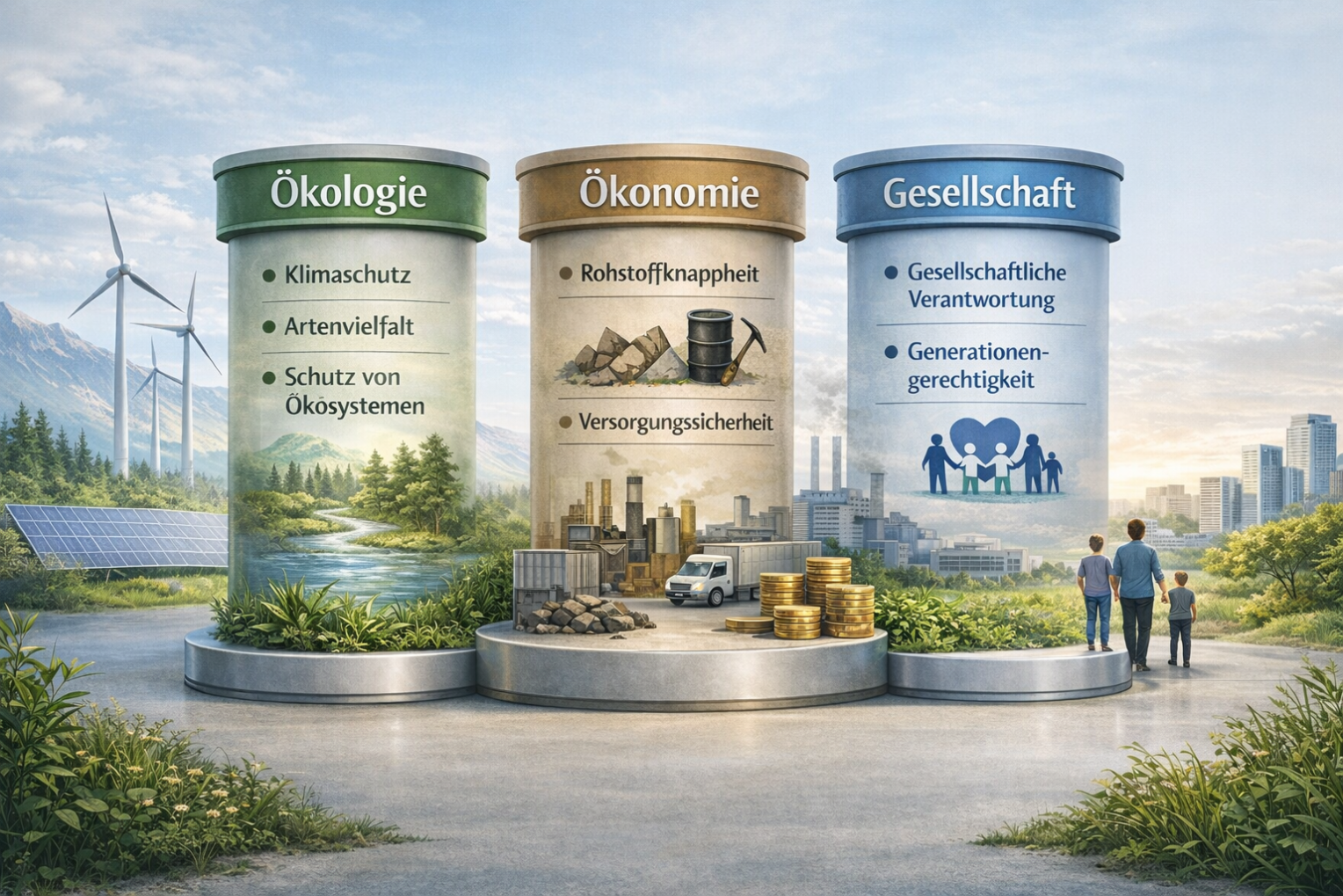 Ressourcenschonung verknüpft diese drei Dimensionen und ist damit ein integraler Bestandteil einer nachhaltigen Lebens- und Wirtschaftsweise.