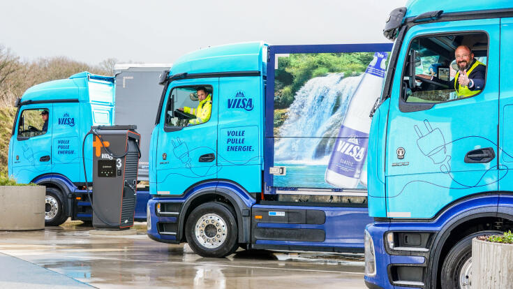 Neue Ladeinfrastruktur auf dem VILSA Lkw-Warteplatz Die maximale Auslastung kann nur mit entsprechender Ladeinfrastruktur funktionieren. Der Mineralbrunnen hat auch dafür kräftig investiert: Marco Peters, Leitung Facility Management bei VILSA: „Wir haben im Februar 2026 die neue Trafostation aufgebaut – wir laden bei VILSA ausschließlich mit Öko-Strom. Drei Schnellladesäulen mit je 400kW-Ladeleistung und mit sechs Ladepunkten ermöglichen es uns, zukünftig sogar sechs Lkw zeitgleich zu laden. Damit sind wir für die Zukunft und eine mögliche Erweiterung des Fuhrparks bestens aufgestellt. Wir sparen über 300 Tonnen CO2-Emissionen pro Jahr durch den Einsatz ein.“ Mittelfristiges Ziel des Unternehmens ist es, grünen Strom von lokalen Anbietern zu beziehen.